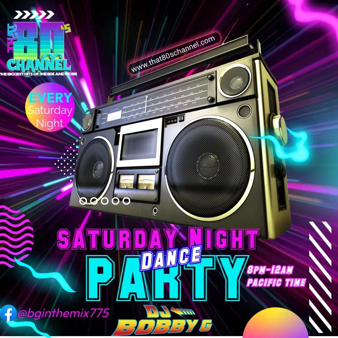 Bobby G has spent a lifetime mixing 80s music in the clubs and onstage. Now he hosts the SATURDAY NIGHT DANCE PARTY, every Sat night from 8 to Midnite pacific time on That 80's Channel! Tune in and check out the amazing mixes, it's the perfect music for Sat night!
